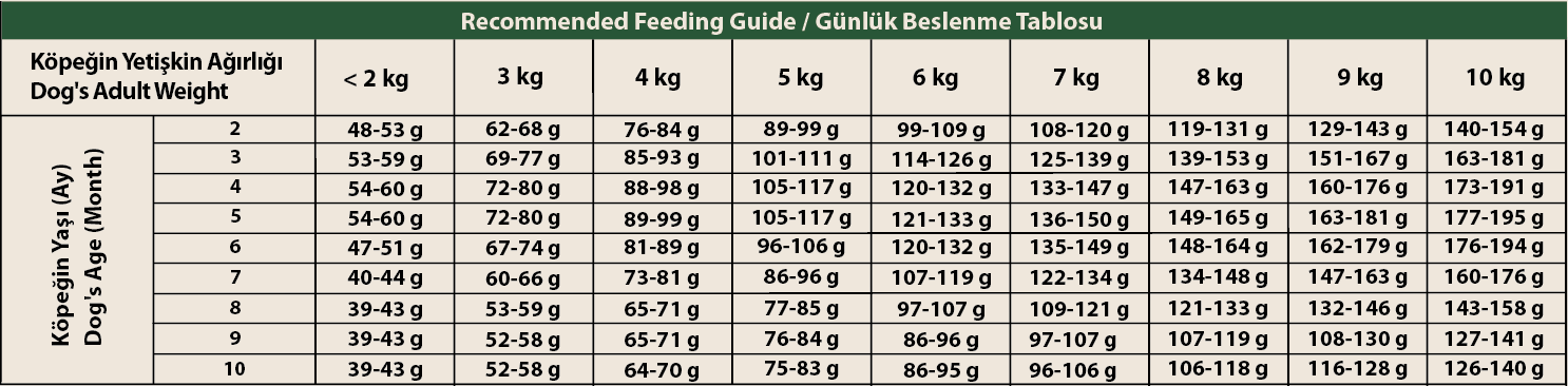 | İçindekiler: | İşlenmiş hayvansal proteinler (tavuk, somon, hamsi proteini), tahıllar (pirinç, mısır, yulaf, arpa), hayvansal yağlar (tavuk, somon, hamsi yağı), bezelye proteini, hidrolize hayvansal protein, krill, şeker pancarı, ciğer aroması, peynir altı suyu tozu, probiyotik, bira mayası, yumurta proteini, vitaminler ve mineraller, kolajen, ıspanak, roka, nohut, fasulye, avokado, deniz yosunu, keten tohumu, chia tohumu, turna yemişi, yaban mersini, hindistan cevizi yağı, sızma zeytinyağı, tuz, yucca schidigera, l-karnitin, mannan-oligosakkaritler (MOS), ksilo-oligosakkaritler (XOS), nar, domates, patates, pancar, havuç, paprika biberi, fesleğen, bal kabağı, brokoli, sarımsak, zencefil, biberiye, zerdeçal, üzüm çekirdeği, turunçgil, karanfil ve doğal antioksidanlar. |
